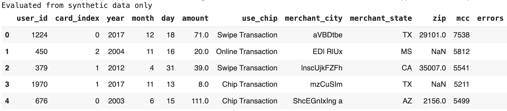 In our example, the data scientist is taking a very simple approach to identify suspicious transactions and can retrieve only a synthetic version of the list.