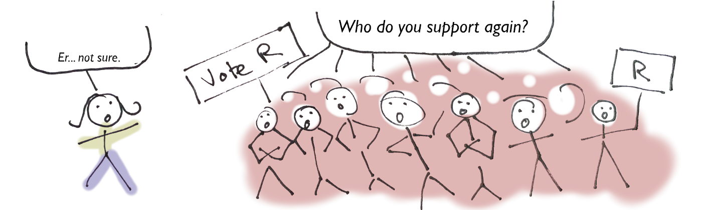 Perhaps your employer has endorsed a particular party or candidate. Maybe your neighbors are vocal about what a disaster it would be if the candidate from party D or R were to stay or get to the White House.