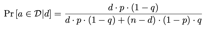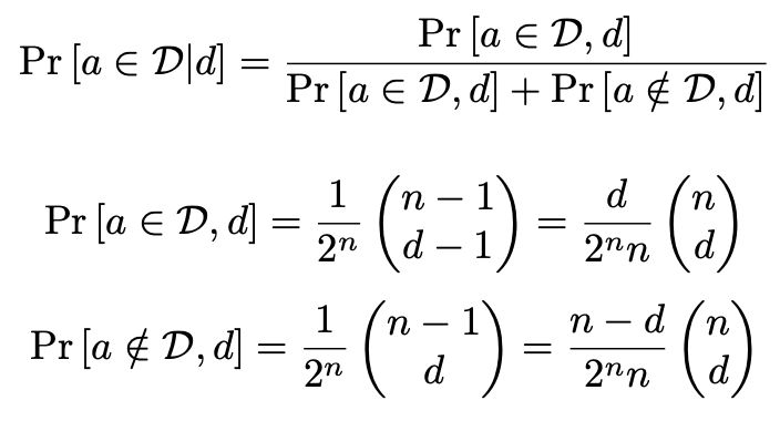 Now the probability that Alice voted for D knowing the count d, also known as the posterior probability, is slightly more complex:
