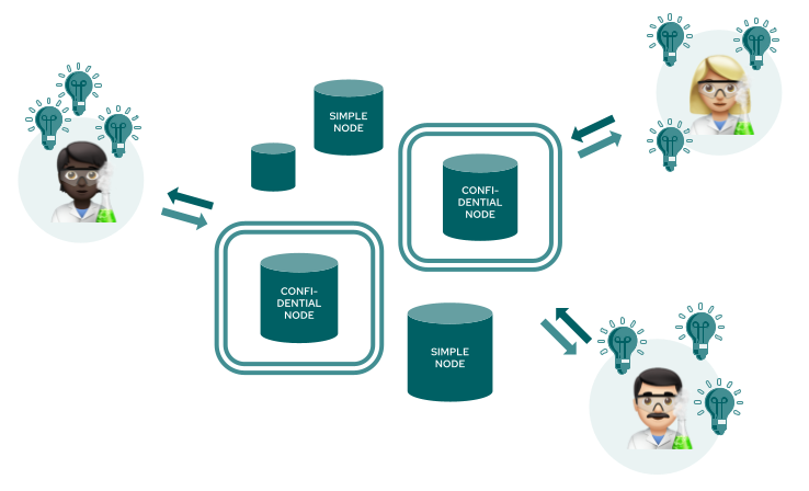 In the Confidential Data Mesh, no sensitive data can be extracted from a node, but computations can still be performed on it. Since it implements the same interoperability requirements as the classic Data Mesh, data sources can be catalogued just the same. Applications that need to pull samples of data or even stream the data can always access synthetic data that mimics the property of the source and is generated with differentially-private deep learning algorithms. Node-level databases can be queried using differentially-private implementations of SQL queries. Machine learning can be trained on the original data, still with differential-privacy guarantees.
