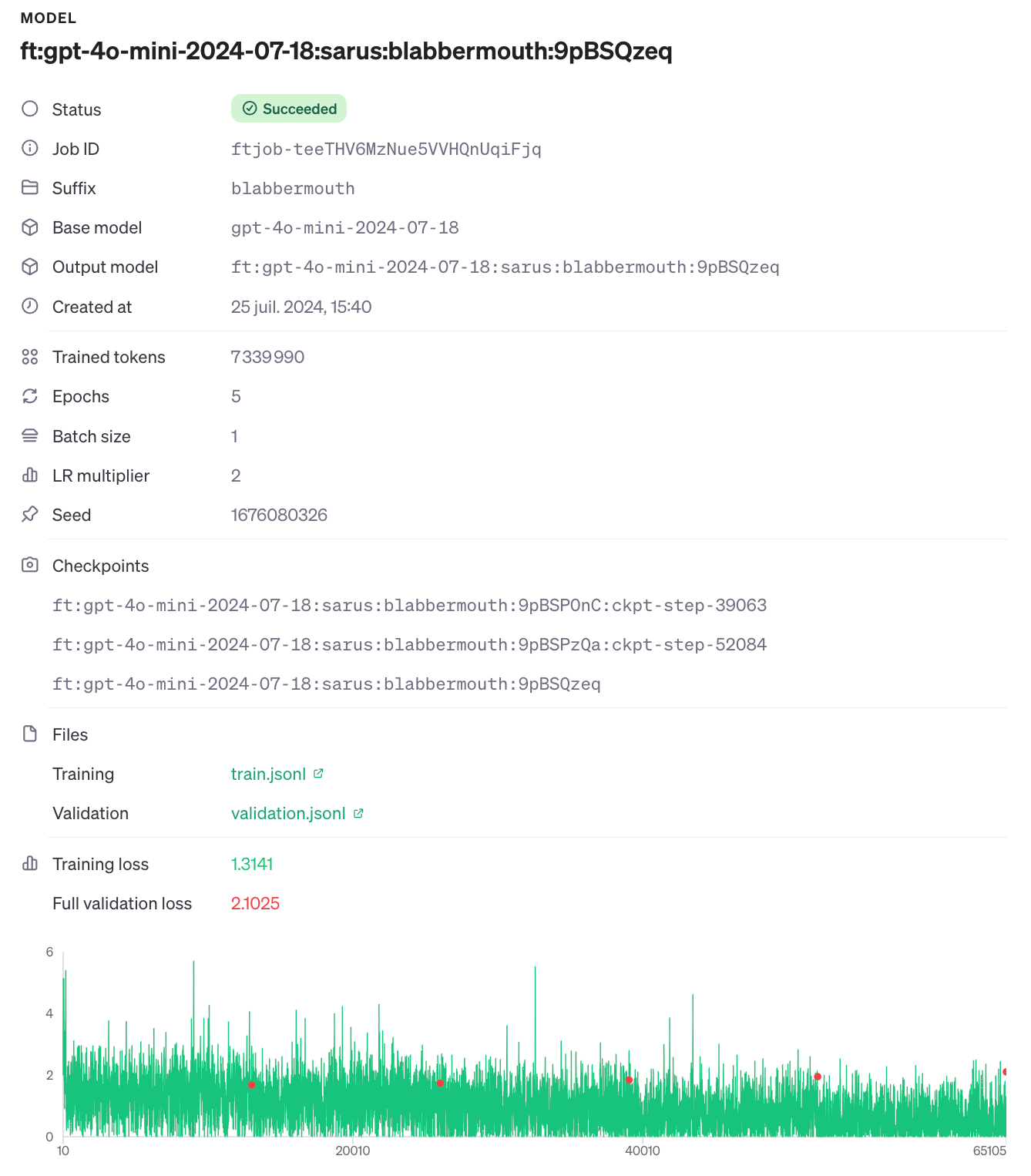 Then we launched a fine-tuning job using OpenAI API.