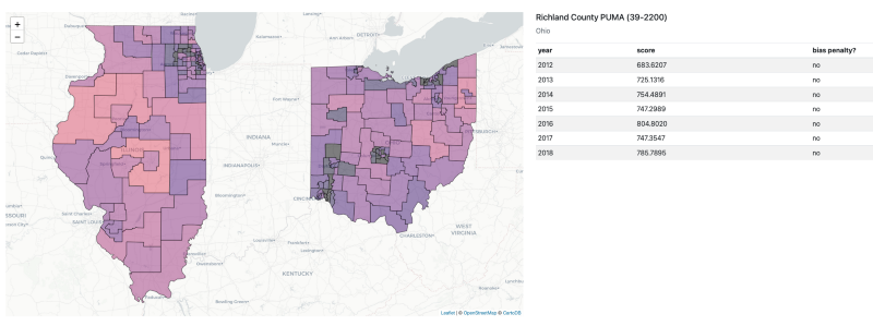 The results can be displayed on a map to figure out where the synthetic data model performed better.