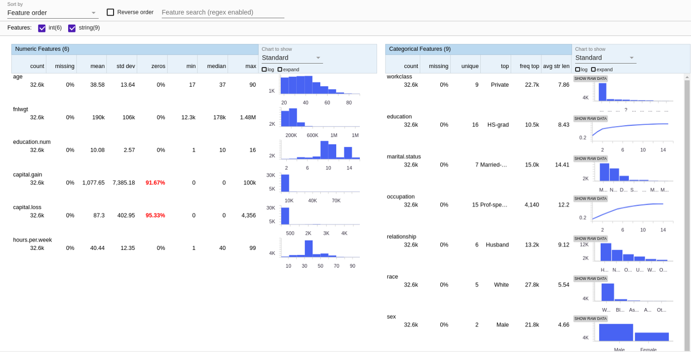 Let’s dive into the code. We’re going to build stats and validation schemas for the famous “census” dataset available on Kaggle. It’s based on US census data, and the usual exercise is to try to predict people’s annual income (there are only two classes: greater or lower than $50k).