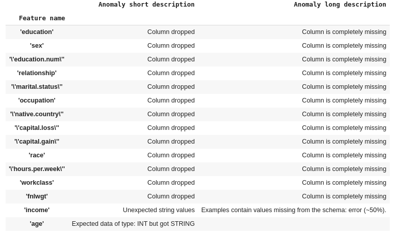 Let’s infer a schema from the stats we just computed.