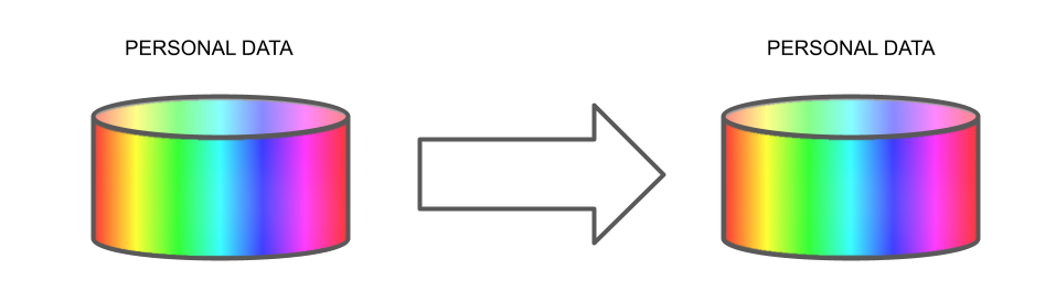 Arrows represent data transformations. It can be rainbow-colored if it encodes personal data. For instance, looking up a patient database and attaching the vaccination status to each row of the input data is definitely rainbow-colored.