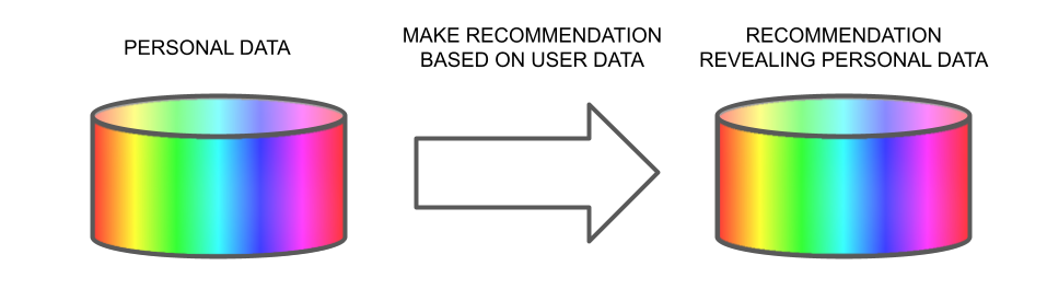 Personalizing the user experience, whether it is a medical treatment or displaying invasive ads, is a process that takes personal data as input and outputs a recommendation, typically using historical data from individuals. The process can be an AI model or something much simpler. But either way, the output is going to be personal, we’ll paint it rainbow! When a department store starts sending coupons for baby items, it clearly reveals what is known about the individuals.