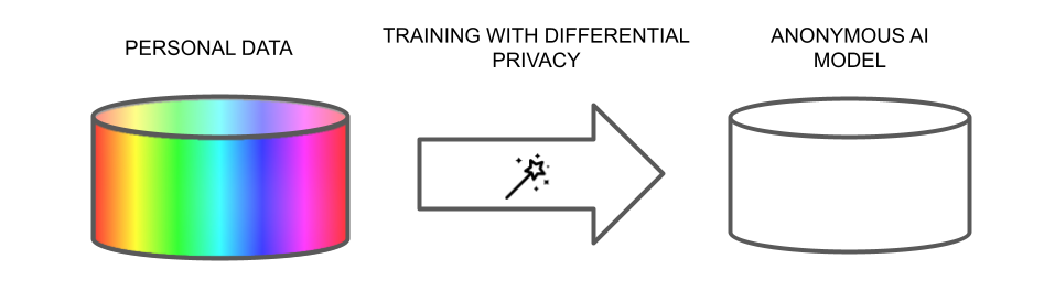 If the AI model has been trained with a magic transformation (e.g. differentially private libraries like Tensorflow Privacy or Opacus), we have the guarantee that the model does not reveal personal information.